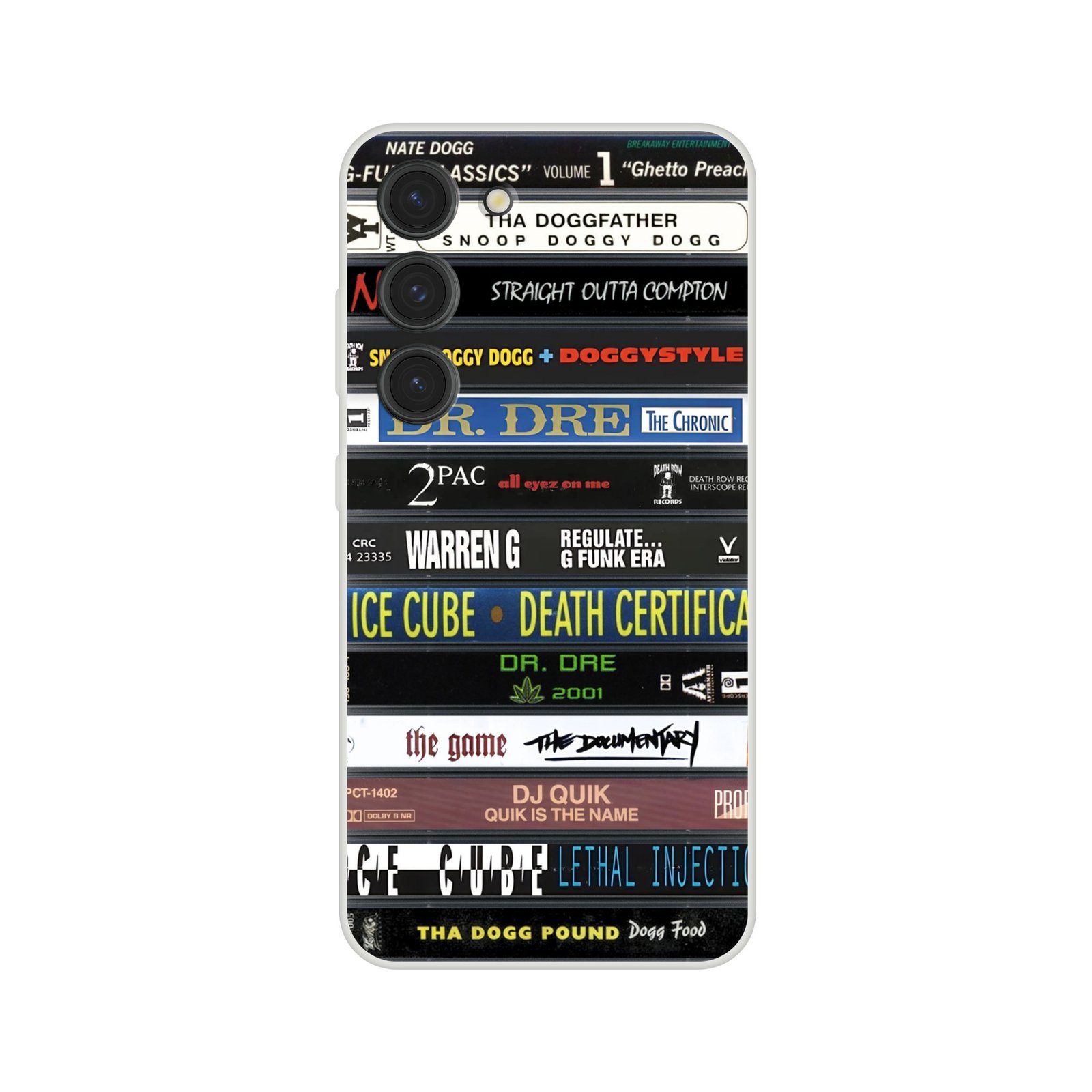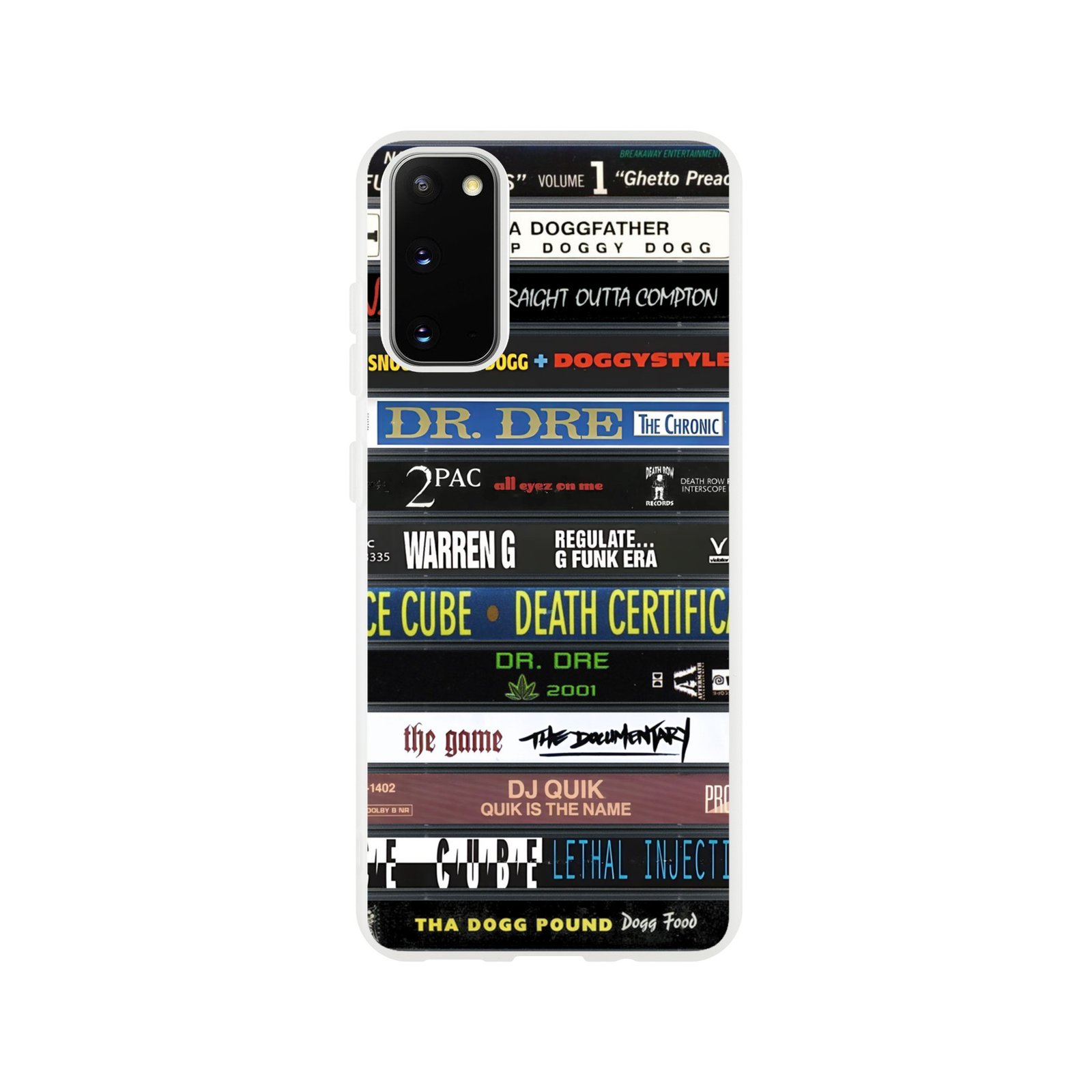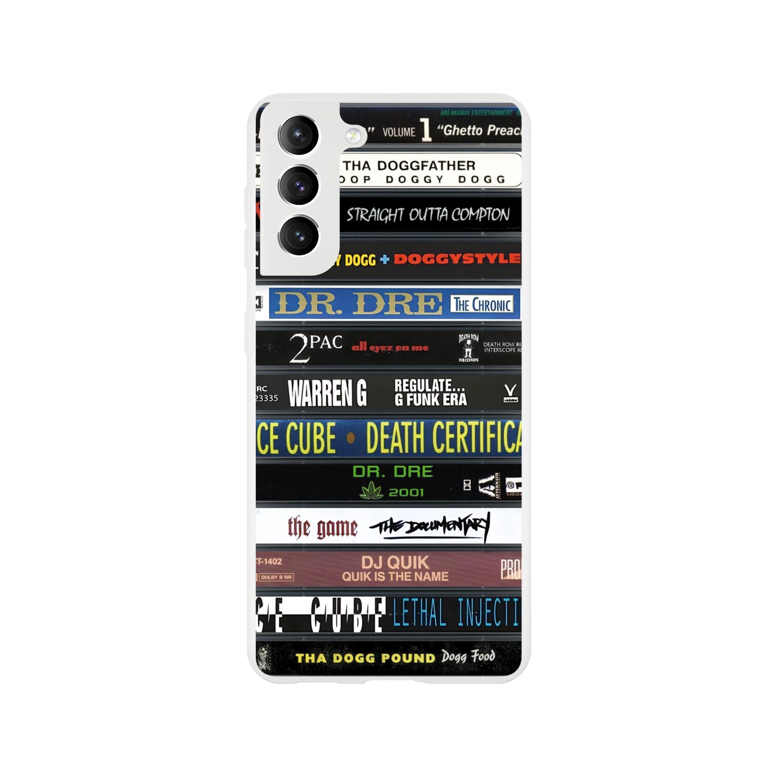Cette coque Samsung Flexi K7 West Coast signée Wax & Wear rend hommage à une époque où le rap californien se diffusait avant tout sur cassette audio. Bien avant le streaming, les K7 accompagnaient les trajets en voiture et les sessions d’écoutes répétées jusqu’à l’usure de la bande.