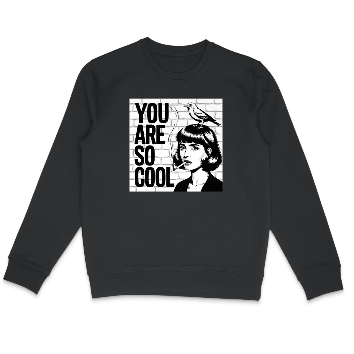Ce sweat message unisexe signé Wax & Wear joue la carte du cool absolu : une esthétique pop-art noir & blanc, un message clair, et une coupe facile à porter.
