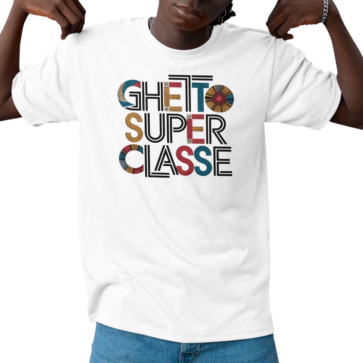 Le t-shirt streetwear unisexe « Ghetto Super Classe » est un clin d’œil assumé à celles et ceux qui cultivent un style urbain affirmé, entre élégance décontractée et messages forts.